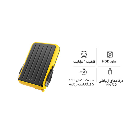 هارد اکسترنال سیلیکون پاور مدل Armor A66 ظرفیت یک ترابایت دارای رابط USB Type-A 3.2 (گارانتی 36 ماهه)